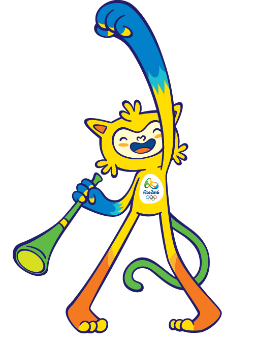 La mascota olímpica Vinicius representa la fauna brasileña, es un animal amarillo de brazos azules con